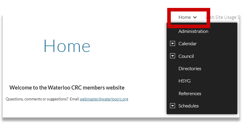 Members with access can view the church schedules/etc by clicking the Login button below the following image. On the Member's page, you can navigate the various schedules by clicking the Home dropdown in the upper-right corner.